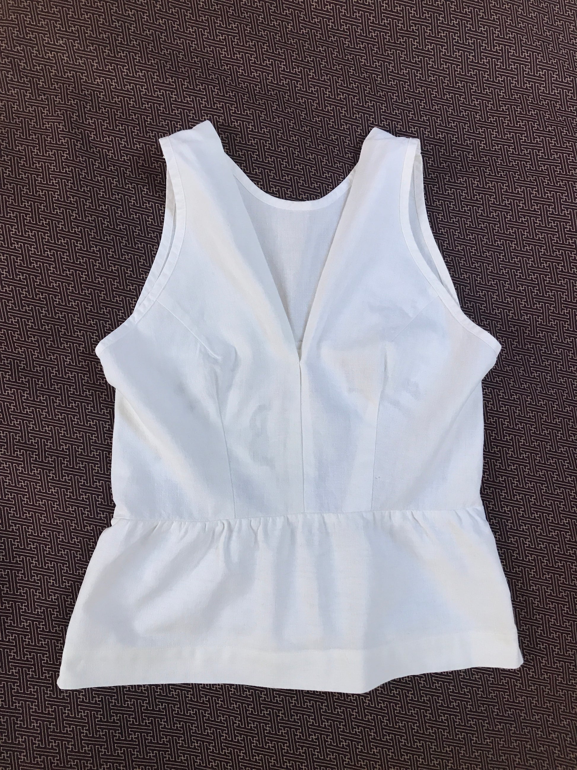 Coarse white cotton, a deep décolleté, and a zipper on the side.